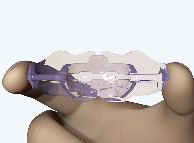 Der Schwerpunkt beim A1 liegt auf der Gewöhnung an die Nasenatmung und der Korrektur myofunktioneller Habits. Die weiche, flexible Apparatur gewährleistet eine gute Mitarbeit und eine Anpassung an alle Kieferformen und Dysgnathien. Die kleinen Atemöffnungen helfen bei der Gewöhnung an eine kontinuierliche Nasenatmung, die myofunktionellen Funktionsmerkmale korrigieren Habits. Gehen Sie erst dann zum A2 über, wenn das A1 nachts im Mund bleibt und die Nasenatmung etabliert ist.