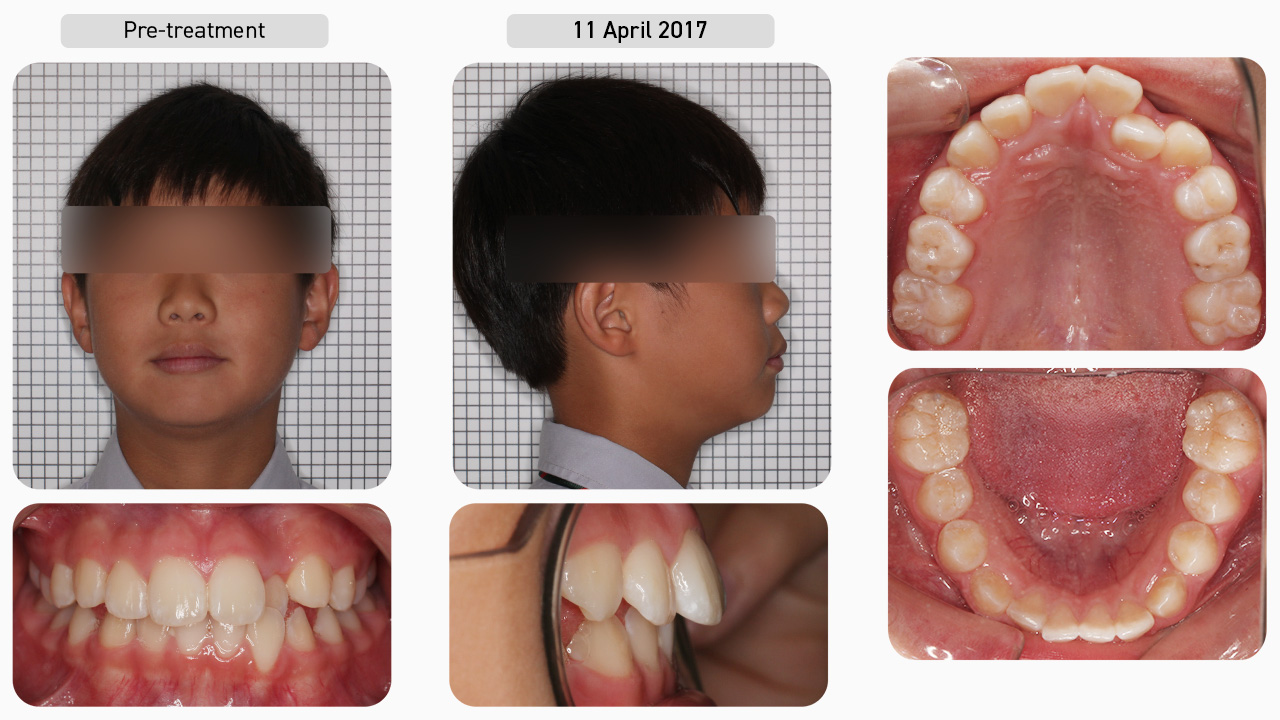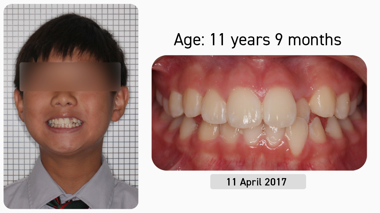 This 11-year-old male patient presented with the chief complaint of crowded, crooked teeth and difficulty chewing. After being presented with the various treatment options, the decision was made to undertake Myobrace® treatment. This involved the use of Myobrace® appliances, in conjunction with the BWS arch expansion appliance, and the Myobrace® Activities.